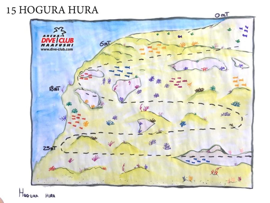 This is a place for macro photographs. Hogura Hura is a beautiful, relaxing dive site without currents for all levels of divers. The reef is covered mainly with hard corals, ascidians, algae and soft corals. Plenty of colorful nudibranches and flatworms, many different moray eels are found here as well as a dense lionfish population, stonefishes and many rare crustaceans and hidden juveniles. Sometimes you can even find a ghost pipe fish.